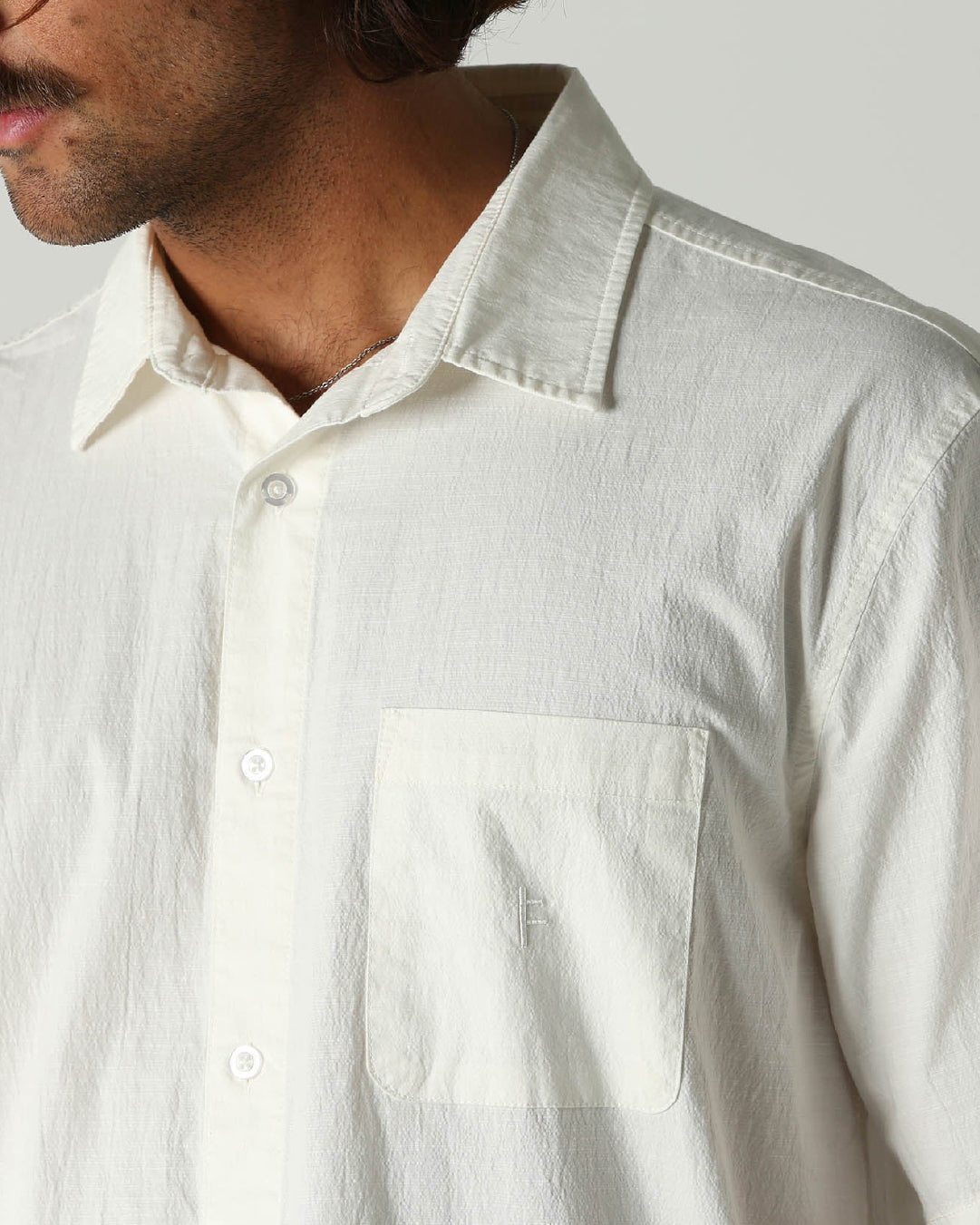 Esta camisa de manga corta está diseñada en una tela de algodón slub premium para una sensación suave y texturizada. Confeccionada con una mezcla de 97% algodón y 3% elastano, la camisa Former Vivian se presenta en nuestro corte atemporal Vivian, con el bordado distintivo de Franchise F en el bolsillo, una fabricación de interés en la superficie y botones teñidos a juego.