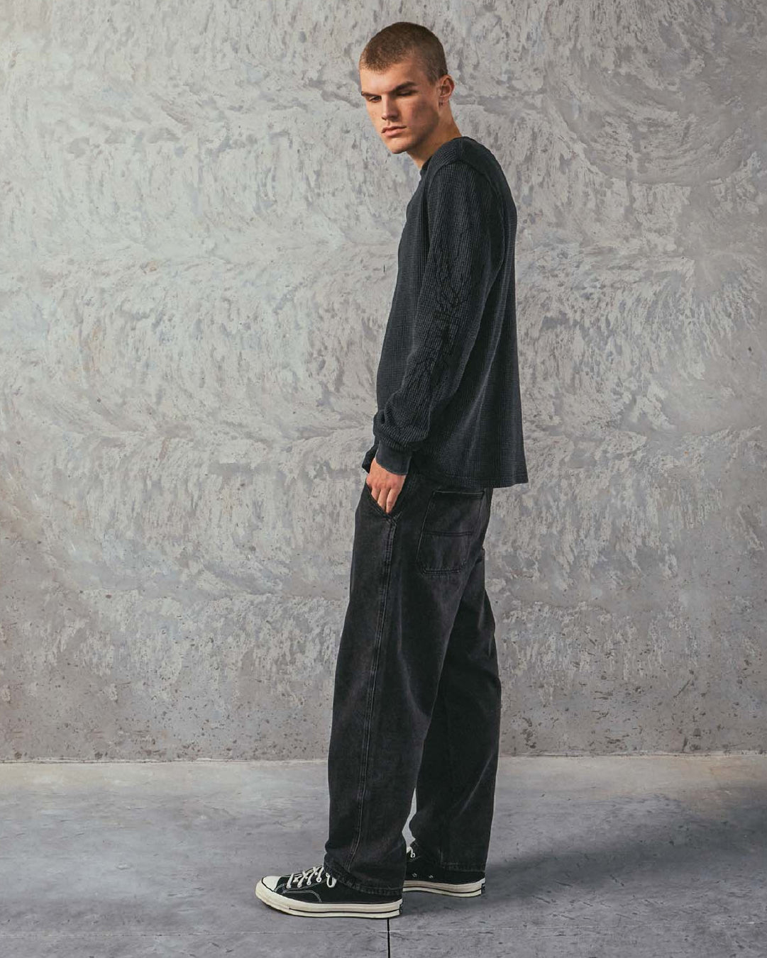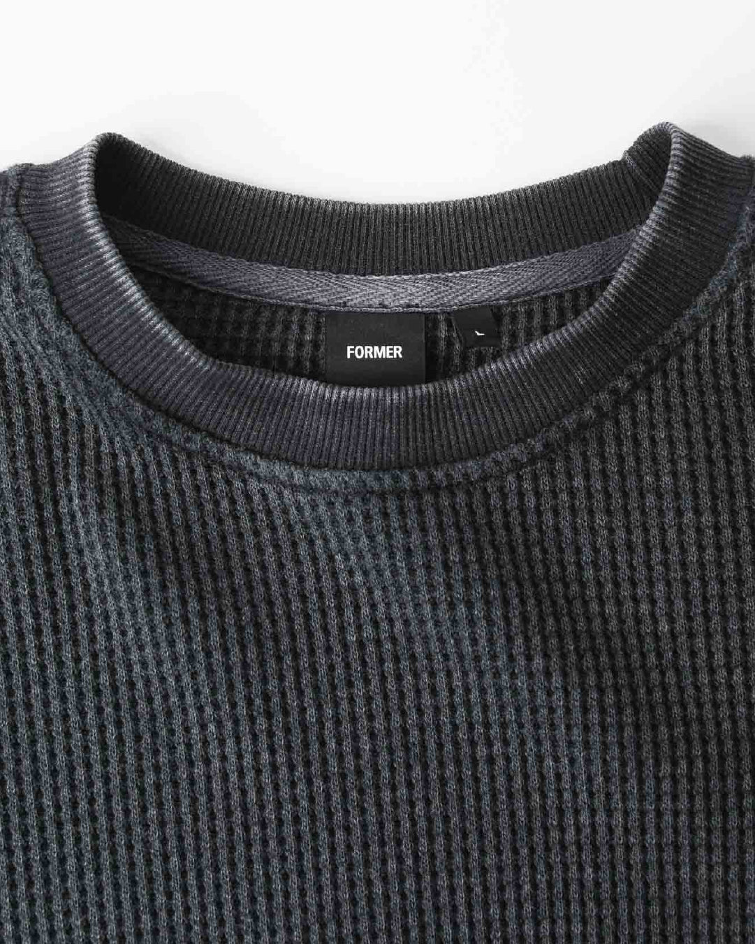 Polera confeccionada con una mezcla premium de 240 g/m², 65 % poliéster y 35 % algodón, y con nuestro corte waffle de manga larga. Con un acabado ácido "Merch-Wash", gráficos en las mangas en una serigrafía de plastisol suave al tacto y etiquetas internas tejidas.